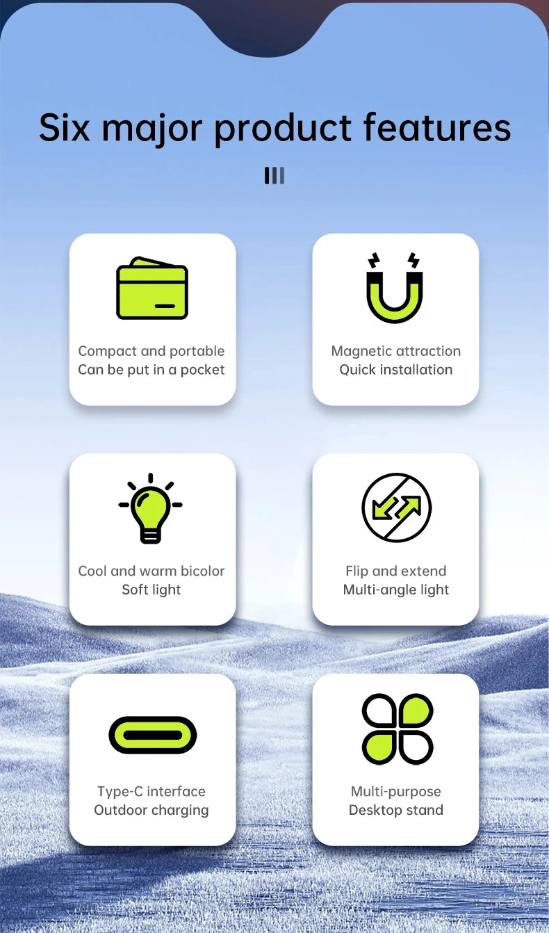 This innovative magnetic accessory combines a practical selfie mirror with a powerful, adjustable dual-color fill light in one incredibly compact unit. Its strong magnet offers hassle-free attachment, while the reversible light and adjustable angles provide ultimate flexibility for achieving perfectly lit and framed selfies or videos anytime, anywhere. The choice between warm and cool light, plus dimming control, allows for professional-looking results in any environment.